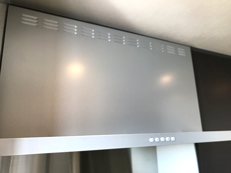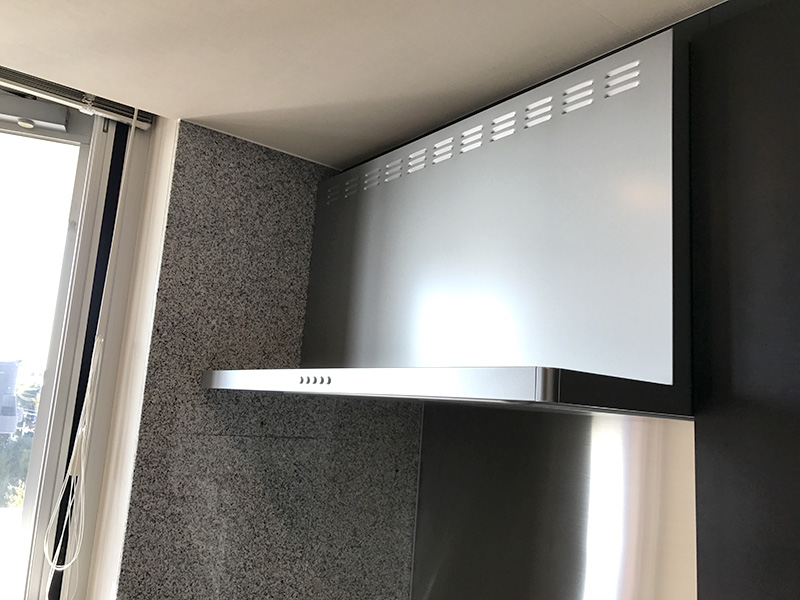 レンジフードはすっきりとしたデザインで、ガスコンロは水無し両面焼きグリルをご希望でしたので、ご希望に沿った内容でご提案させて頂きました。
