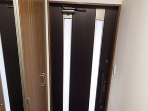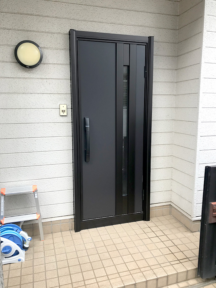 玄関ドアは防犯面を考え、鍵穴が見えない物でリモコンで開け閉めでき、通風可能なものを取り付けました。大満足していただくことができ、嬉しく思います。