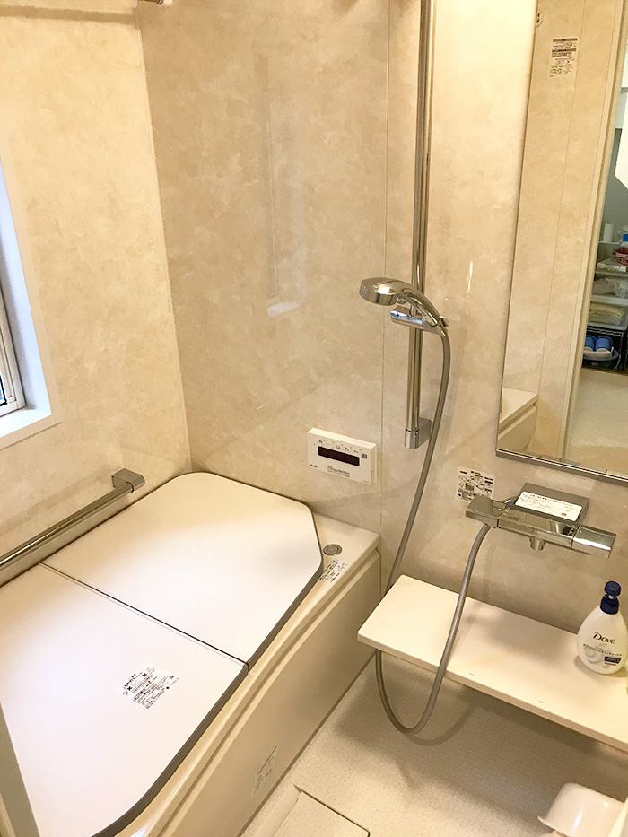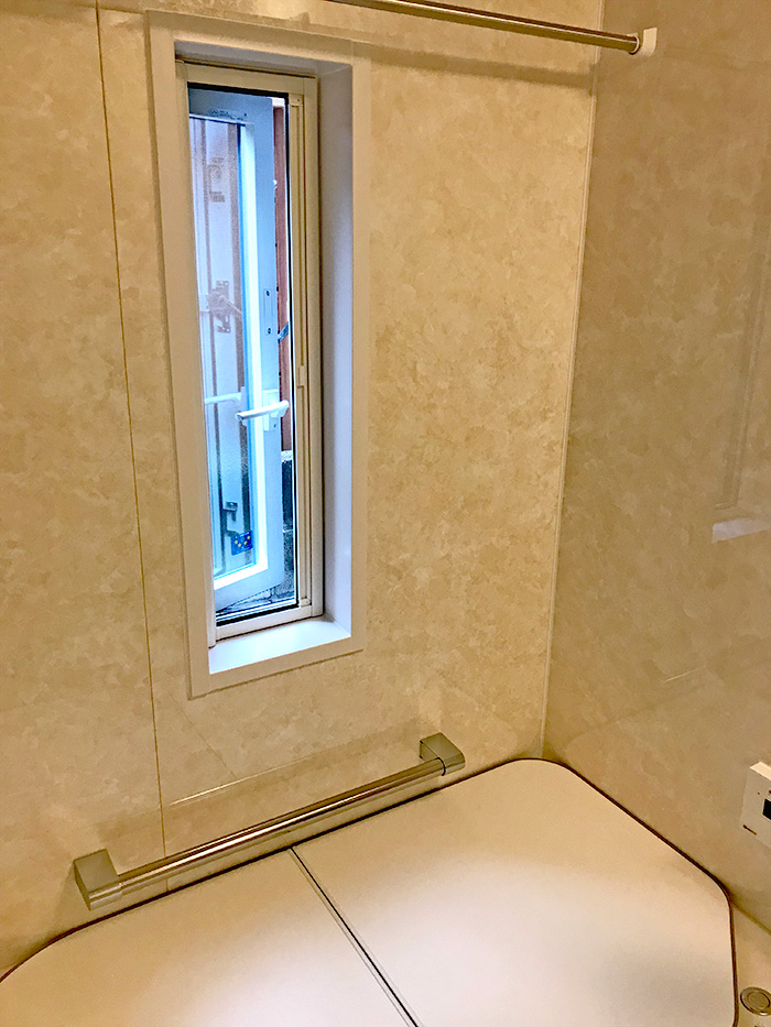 また、浴室は従来のタイル張りのお風呂でとても寒いと感じておりましたので、ユニットバスにいたしました。さらに断熱性能向上させるため、窓をYKKapの樹脂窓に交換させていただきました。