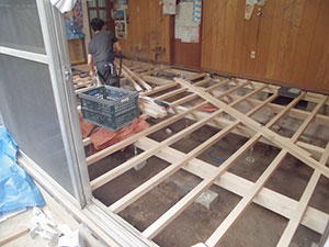 介護用のベッドを置きたいが、床がフカフカしていてベッドが置けないため直してほしい。